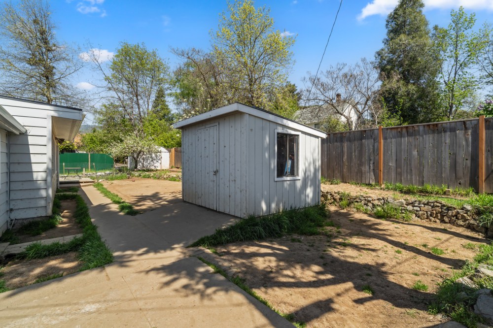 - Two storage sheds and ample off-street parking