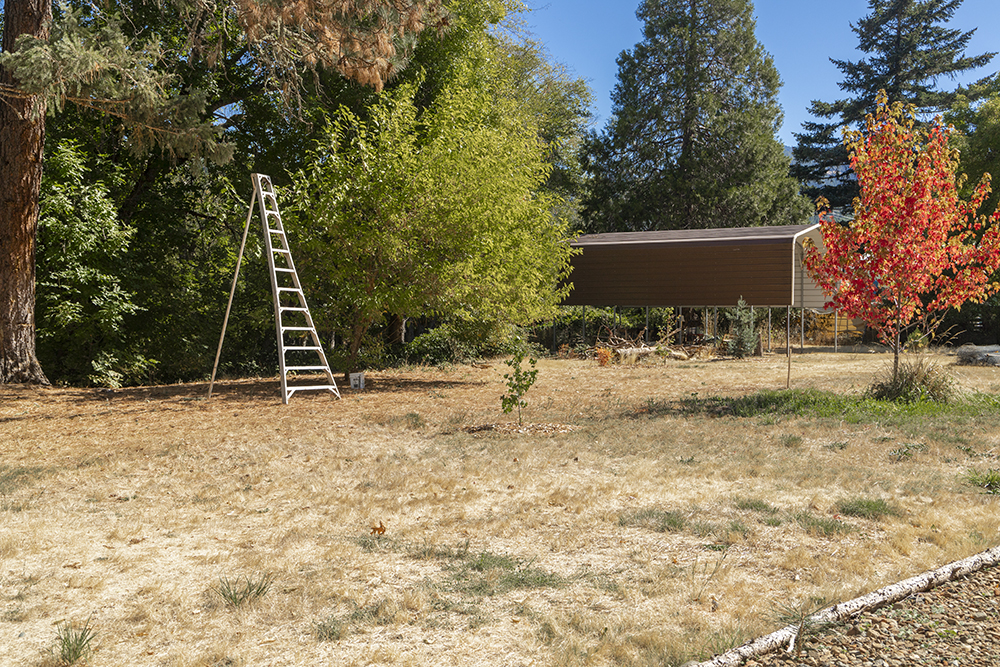 A towering redwood tree greets you near the entrance, a kind of quiet guardian that’s watched over the years. Around it, a diverse mix of trees and native plant life provides both shade and beauty, creating a natural rhythm that shifts with the seasons. This isn’t manicured landscaping; it’s land that feels lived-in, loved, and ready for its next chapter.
